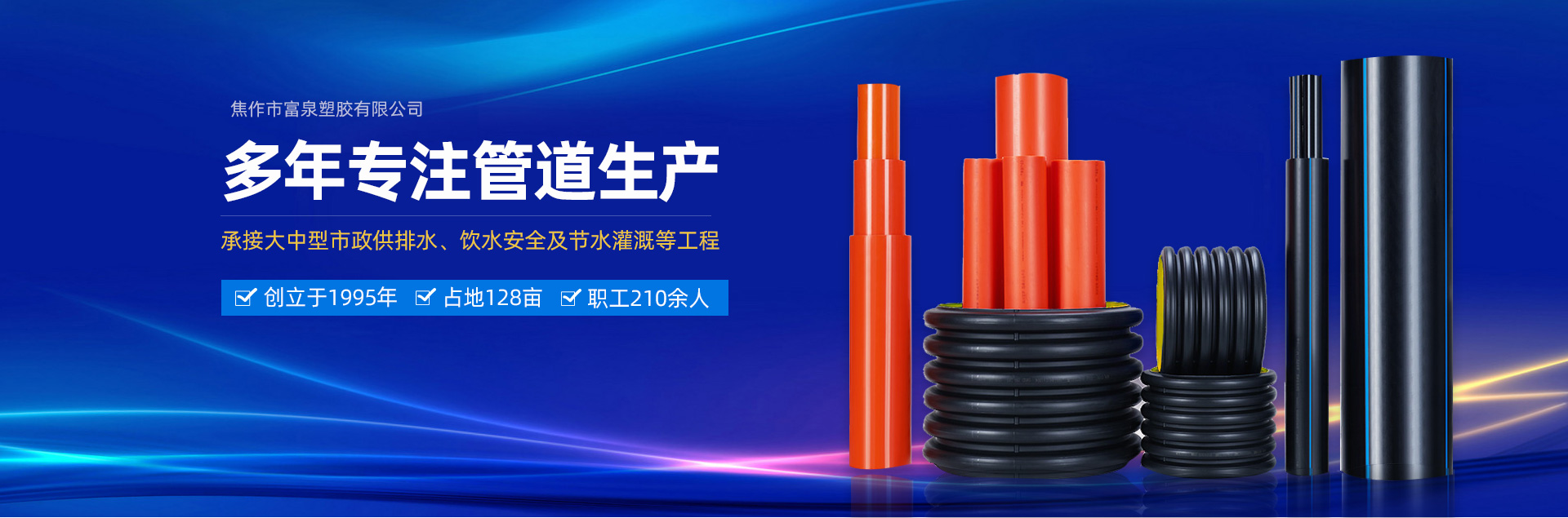 焦作市富泉塑膠有限公司,創(chuàng)立于1995年,是一家集研發(fā)、設(shè)計(jì)、生產(chǎn)、銷售為一體的大型管材企業(yè)。公司位于太極故里、黃河之濱一一河南焦作溫縣。公司占地128畝,現(xiàn)有職工210余人,其中具有中技術(shù)職稱的19人。生產(chǎn)、檢驗(yàn)設(shè)備58臺(套),包括PVC實(shí)壁管生產(chǎn)線11套、PE實(shí)壁管生產(chǎn)線12套、HDPE雙壁波紋管生產(chǎn)線6套、PVC雙壁波紋管生產(chǎn)線5套,檢驗(yàn)設(shè)備14臺(套)。主要產(chǎn)品有:Φ20mm-630mm、各種壓力規(guī)格的PVCU、PVC-M、PE給水管材,PVC-U節(jié)水灌溉管材,HDPE燃?xì)夂偷V用管材,DN200-800mm的HDPE、PVC雙壁波紋管及各種噴灌、滴灌工程材料。承接大中型市政供排水、飲水安全及節(jié)水灌溉等工程。  富泉塑膠公司重視產(chǎn)品的質(zhì)量、安全、環(huán)保和節(jié)能,在同行業(yè)中率先完成了“新華節(jié)水產(chǎn)品認(rèn)證”,全方面通過ISO9001:2008國際質(zhì)量管理體系、IS014001:2004環(huán)境管理體系和OHSAS18001職業(yè)健康安全管理體系的一體化導(dǎo)入,并建立起規(guī)范的現(xiàn)代企業(yè)管理體系。公司以“質(zhì)量”為先導(dǎo),采用質(zhì)量跟蹤、多環(huán)節(jié)把關(guān)的方法,組建具有行業(yè)水準(zhǔn)的企業(yè)技術(shù)檢測中心,常年委托水利部節(jié)水灌溉設(shè)備檢測中心、河南省產(chǎn)品質(zhì)量監(jiān)督檢驗(yàn)院對產(chǎn)品跟蹤檢測,并由中國人民保險公司承保產(chǎn)品質(zhì)量。公司連續(xù)多年被河南省水利廳確定為“安全飲水設(shè)備、節(jié)水灌溉設(shè)備”定點(diǎn)生產(chǎn)企業(yè),并獲得“中國名優(yōu)產(chǎn)品”“質(zhì)量、服務(wù)、信譽(yù)AAA企業(yè)”“河南省**產(chǎn)品”“河南省水利企業(yè)”“河南省守合同、重信用企業(yè)”等榮譽(yù)稱號。  富泉塑膠公司堅(jiān)持“用戶為上”的服務(wù)理念,長期以來,全方面關(guān)注客戶價值,不斷提升服務(wù)水平。服務(wù)隊(duì)伍常年為客戶的產(chǎn)品設(shè)計(jì)、施工、安裝提供合理的方案和全程細(xì)致、周到、**、快捷的技術(shù)服務(wù)。公司自成立以來,一直堅(jiān)持以人為本的宗旨,塑造企業(yè)形象,并致力于新產(chǎn)品的開發(fā),憑借雄厚的技術(shù)開發(fā)能力,先進(jìn)的工藝制造流程,嚴(yán)格的質(zhì)量管理保證體系,優(yōu)良的售后服務(wù)網(wǎng)絡(luò),已成為河南省大的飲水、灌溉及排水管材設(shè)備制造商。產(chǎn)品暢銷全國,而且還以公司雄厚的綜合實(shí)力在業(yè)界中占據(jù)著重要的地位。